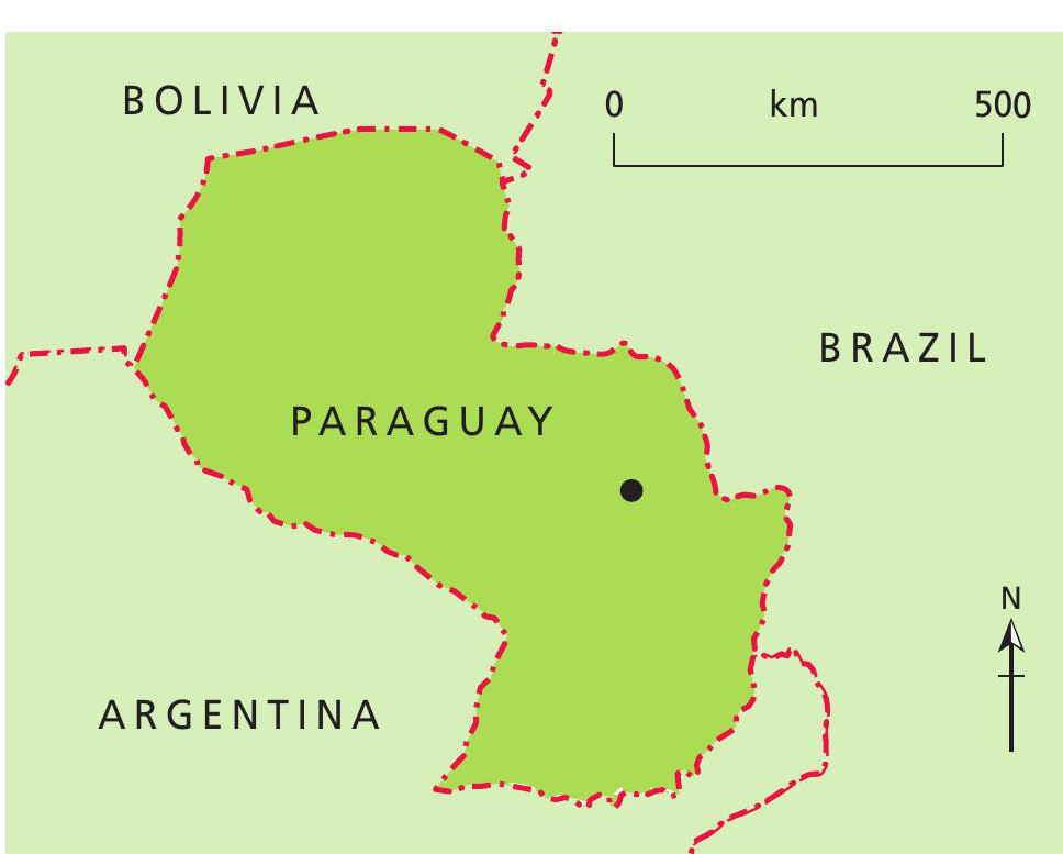 Figure 1 The location of Paraguay in South America. The black dot represents the ex-reserve Laguna Blanca